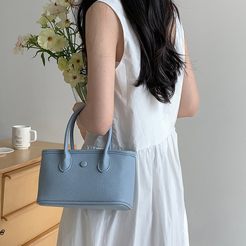 กระเป๋าตะกร้ามือถือสไตล์เกาหลีแบบลำลองของผู้หญิงกระเป๋าน้ำหนักเบาทำจาก PU แบบคาดตัวเปิดปิดมีสไตล์ซับโพลีเอสเตอร์สีทึบ